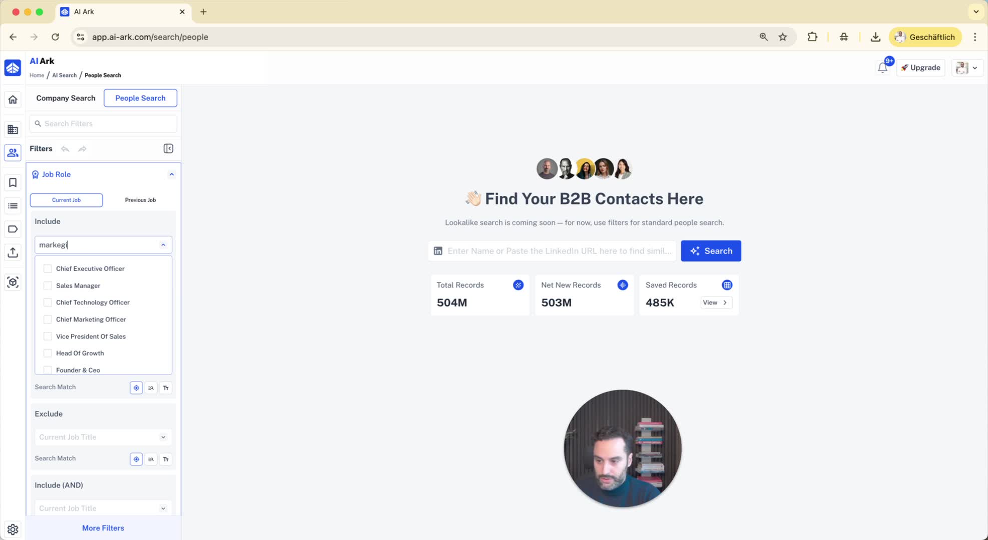 Choose between 'people search' and 'company search' options.