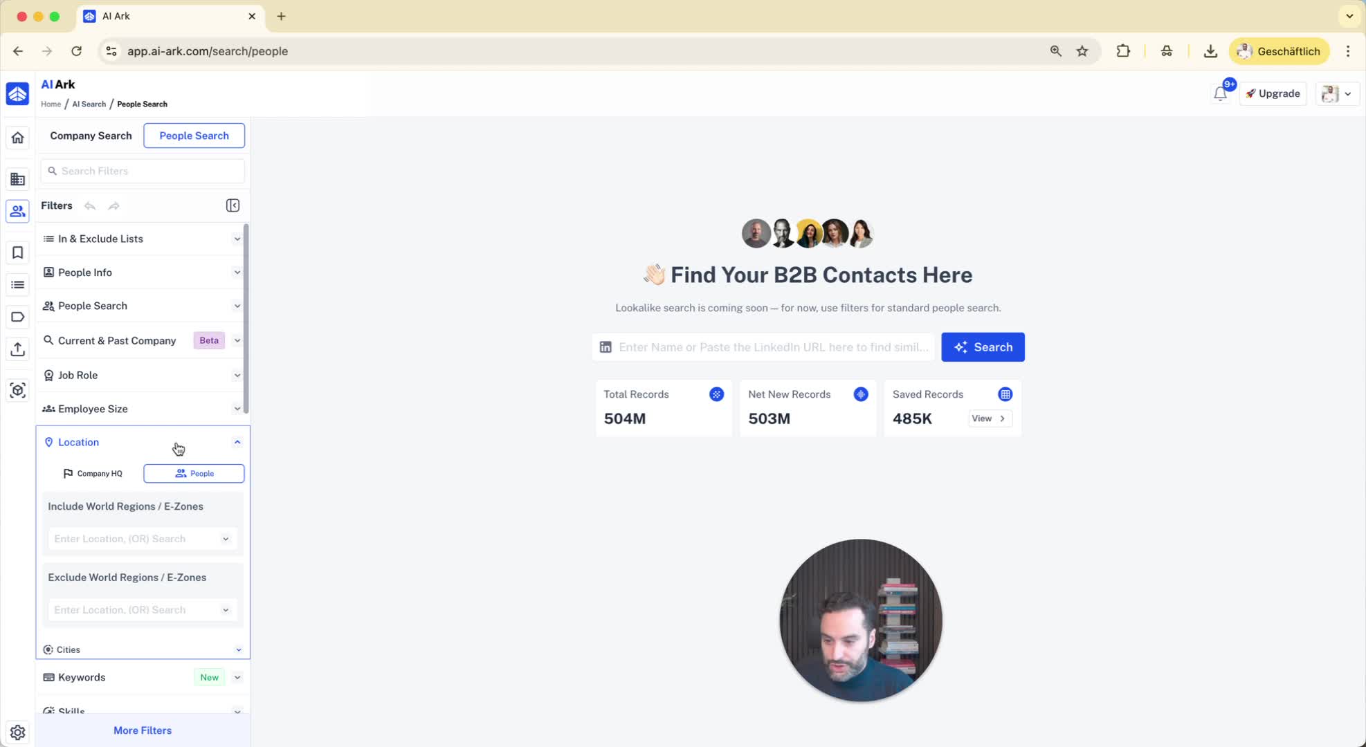 In the 'people search', locate the 'location' filter.