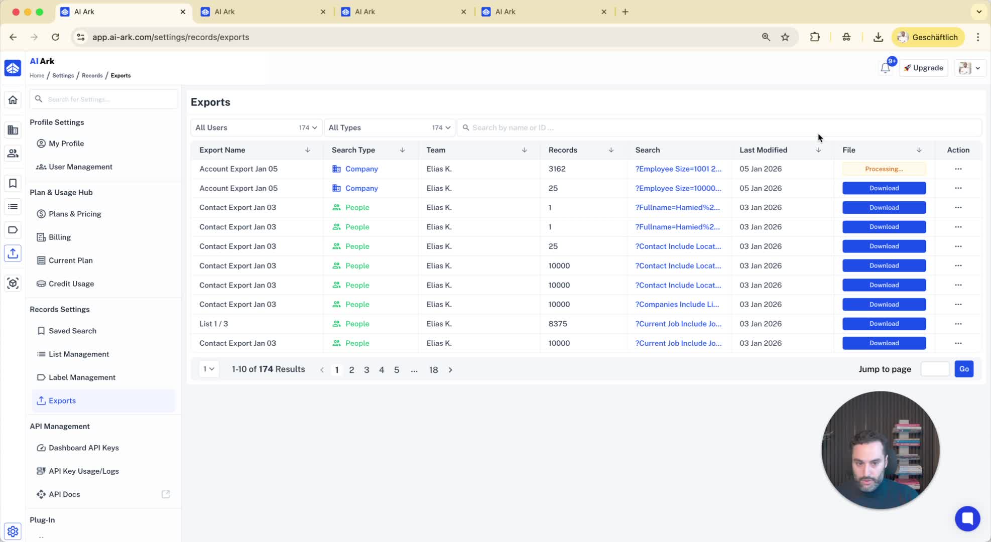 Download the completed export once ready.
