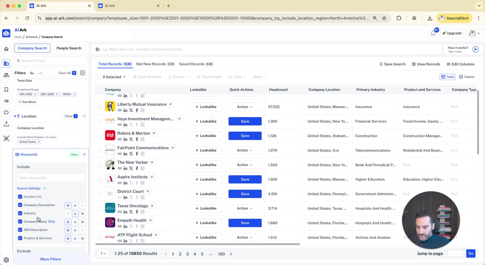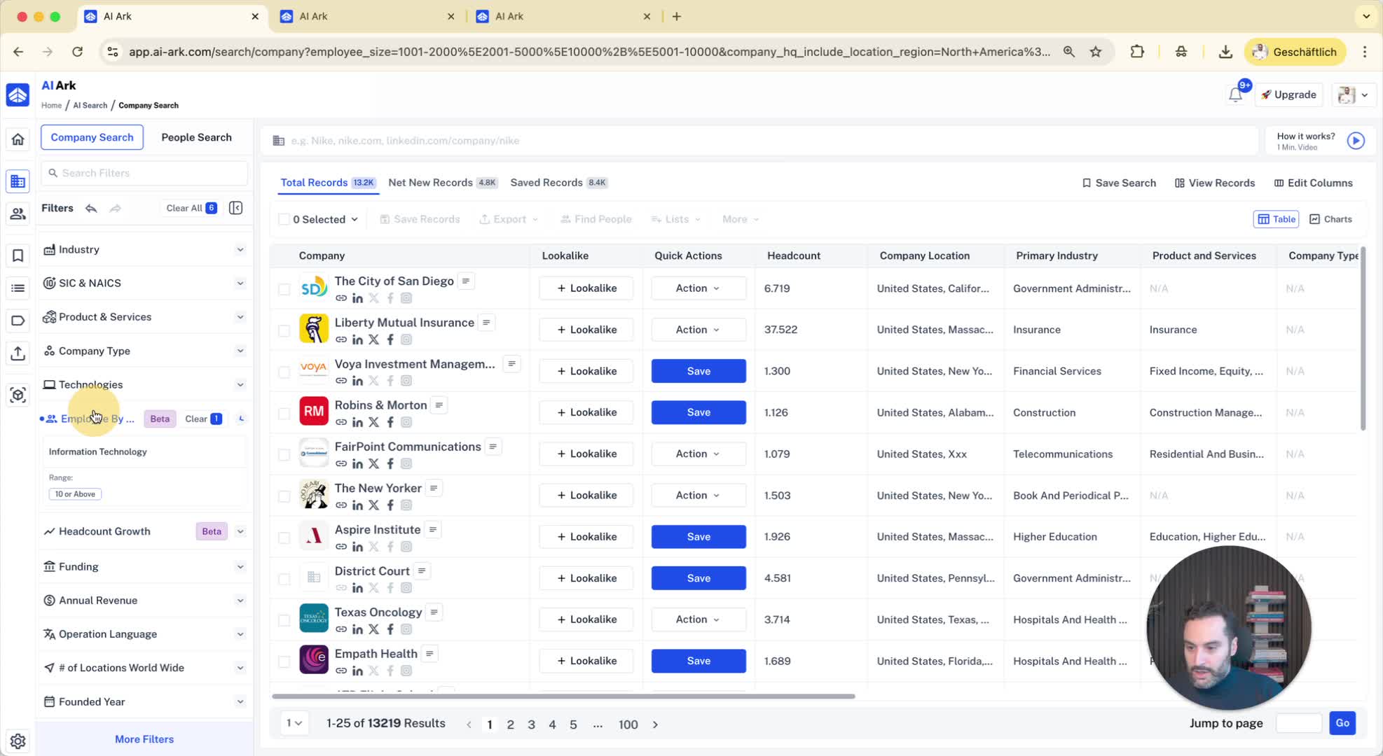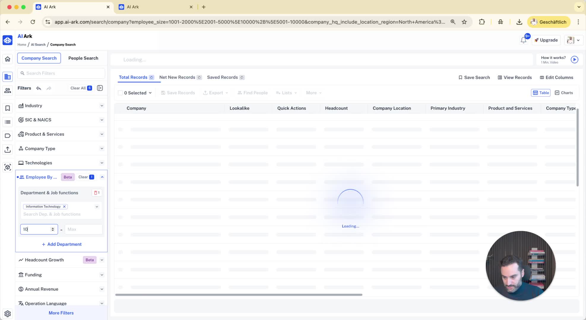 Combine filters for more precise results (e.g., companies with more than 1000 employees and an IT department of at least 10 employees).