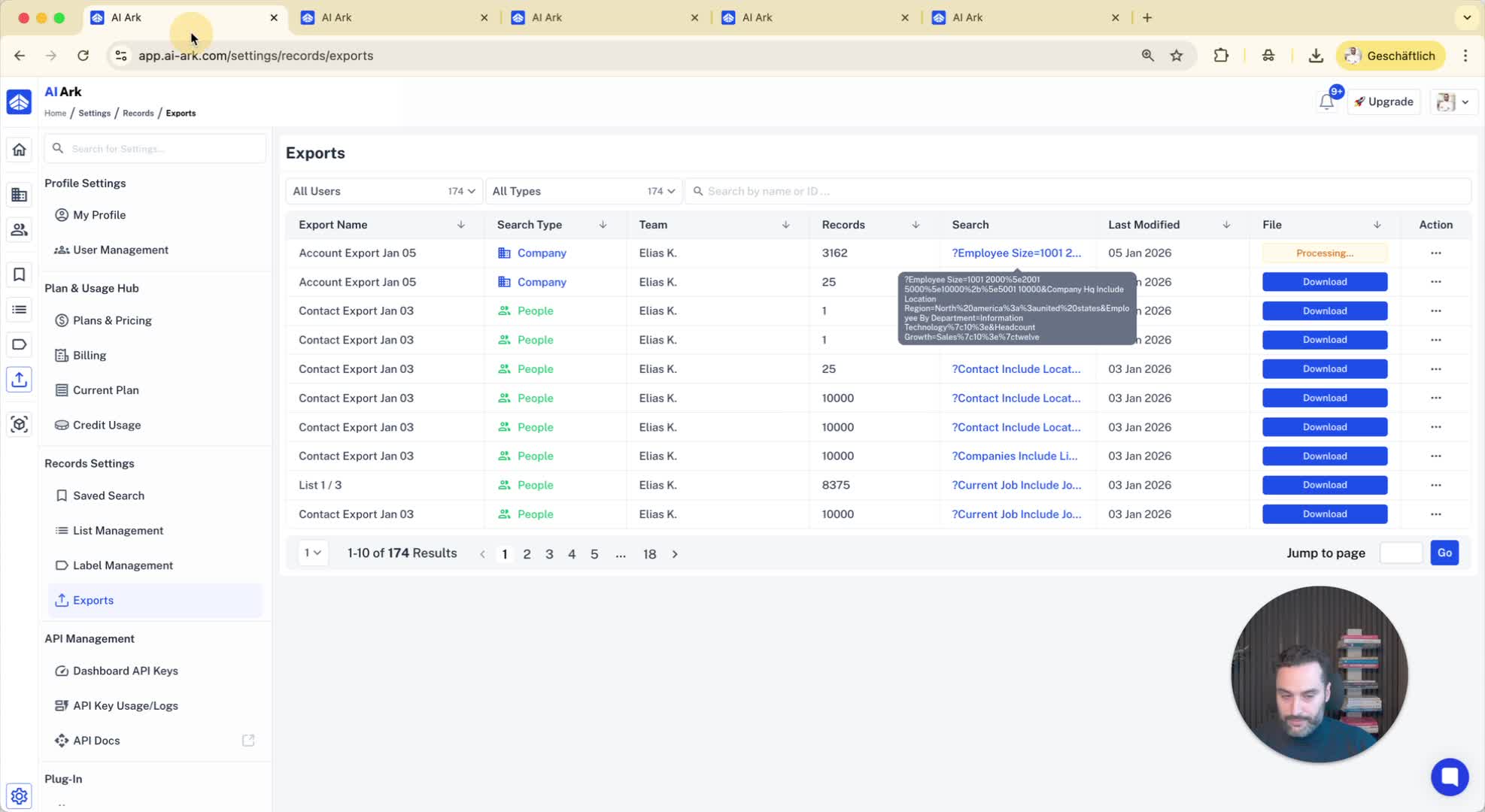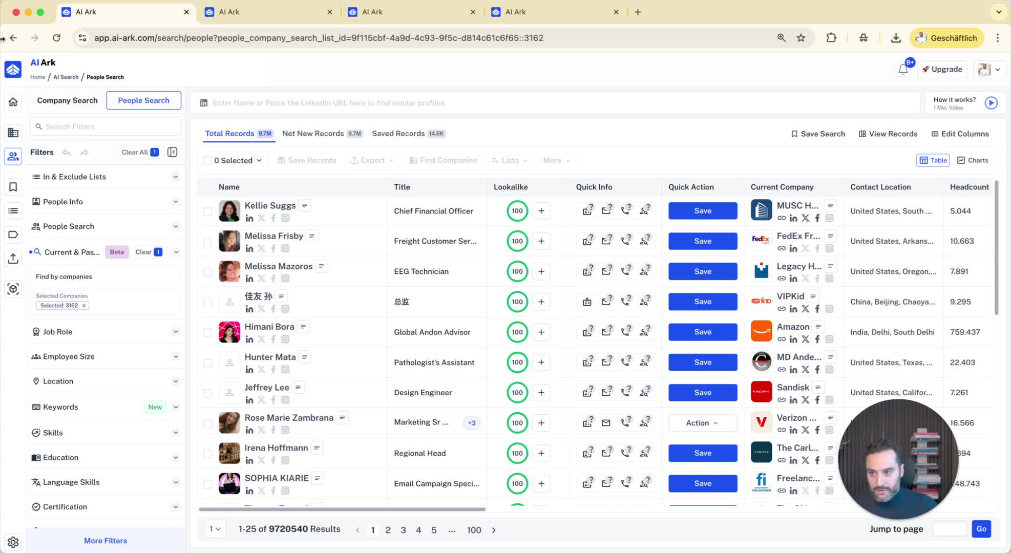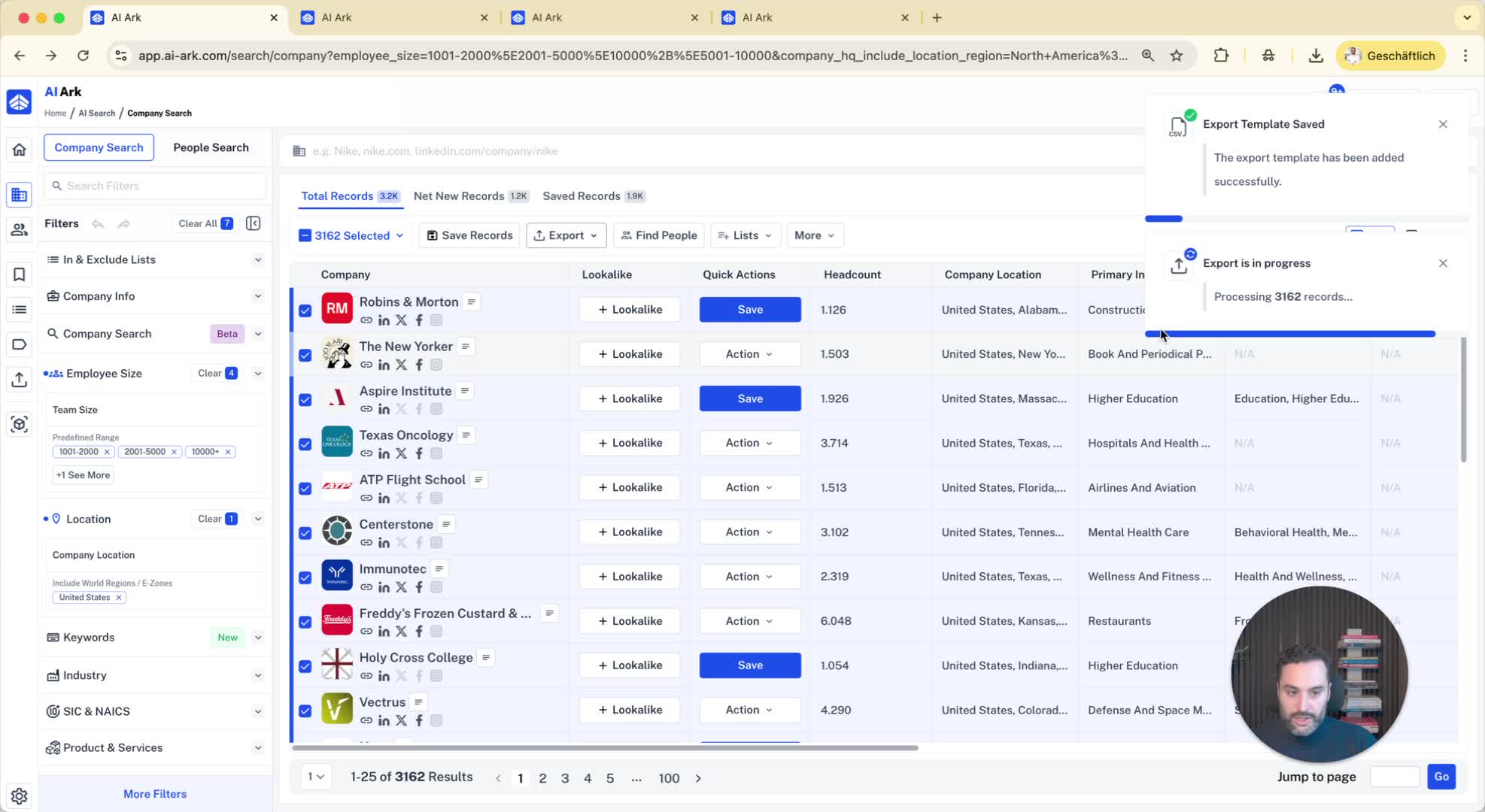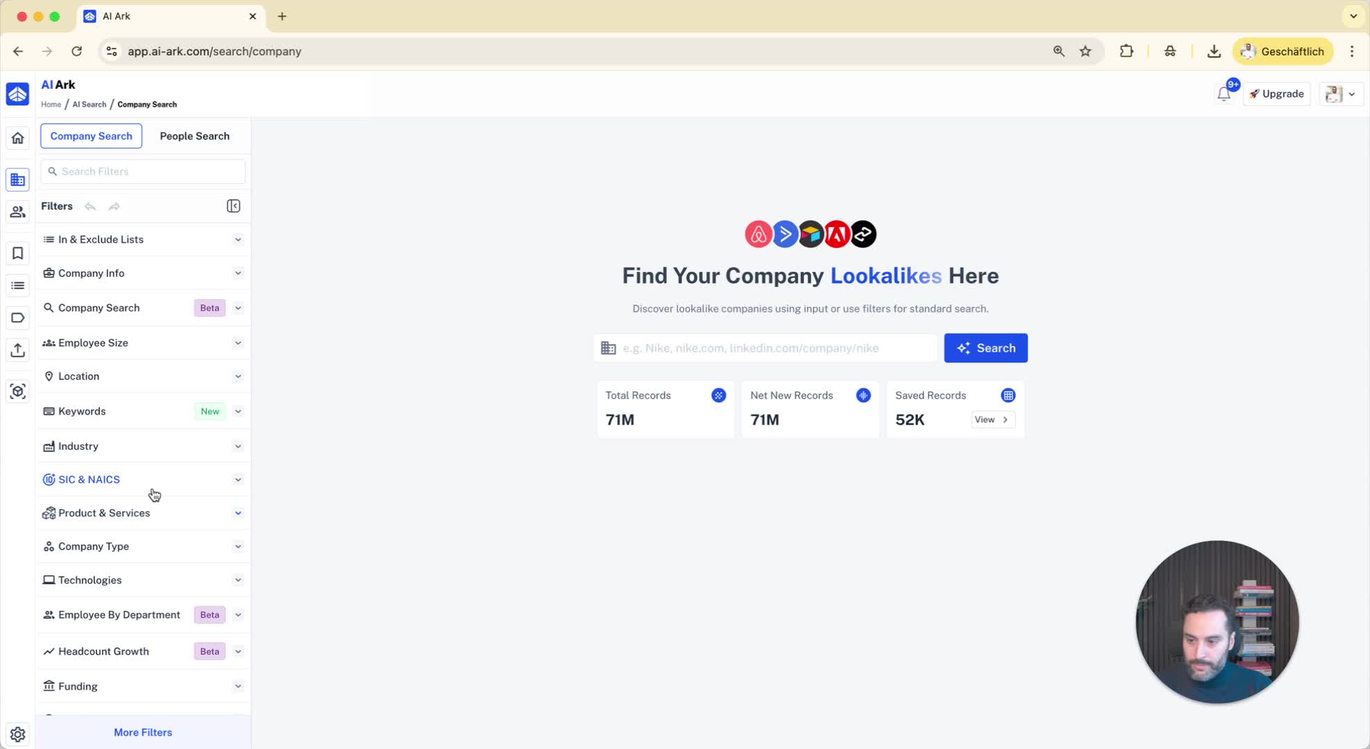 Combine filters for more precise results (e.g., companies with more than 1000 employees and an IT department of at least 10 employees).
