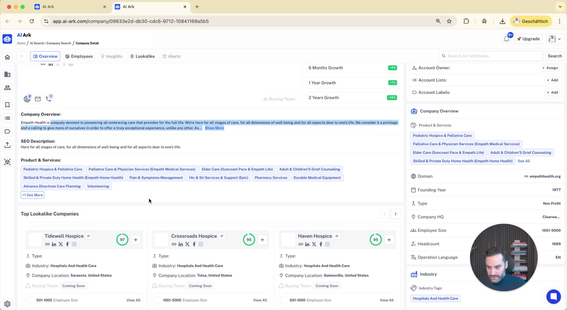 Searching for companies with specific services (e.g., pharmacy services).