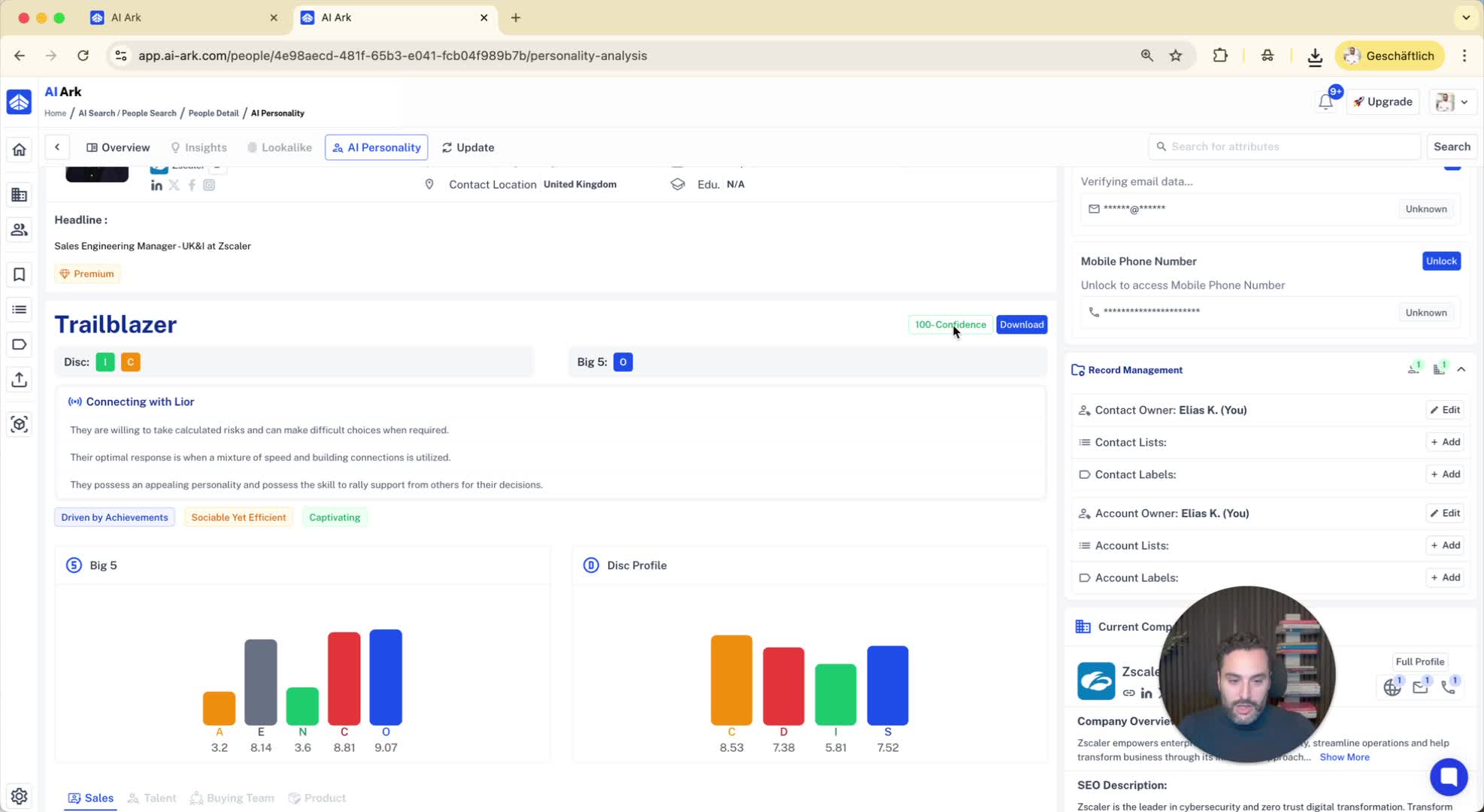 Access detailed information about the individual, including contact details.