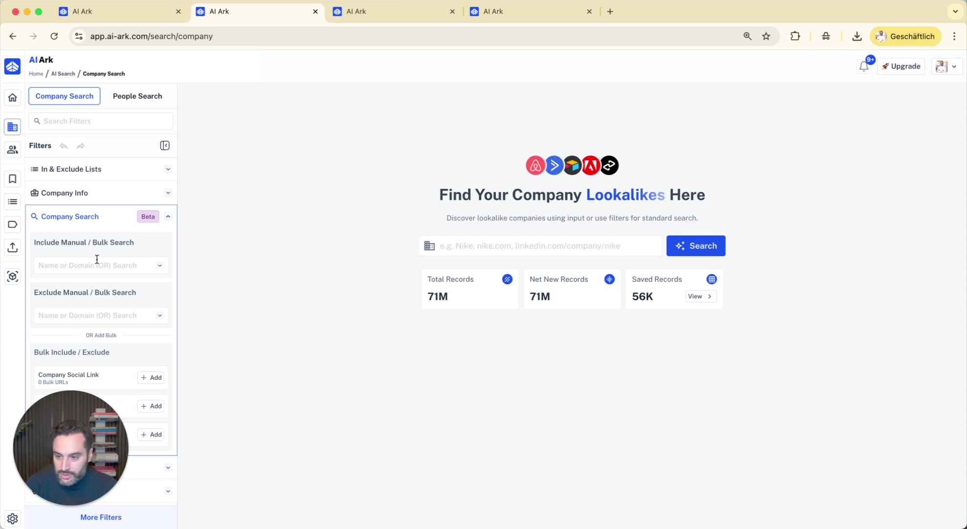Use filters and company search to find a company profile.