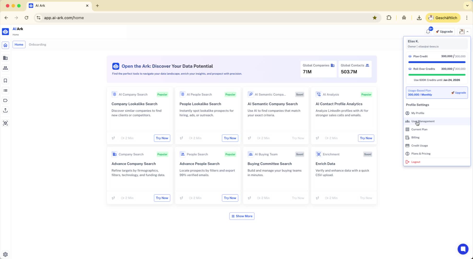 Select 'User Management' from the dropdown.