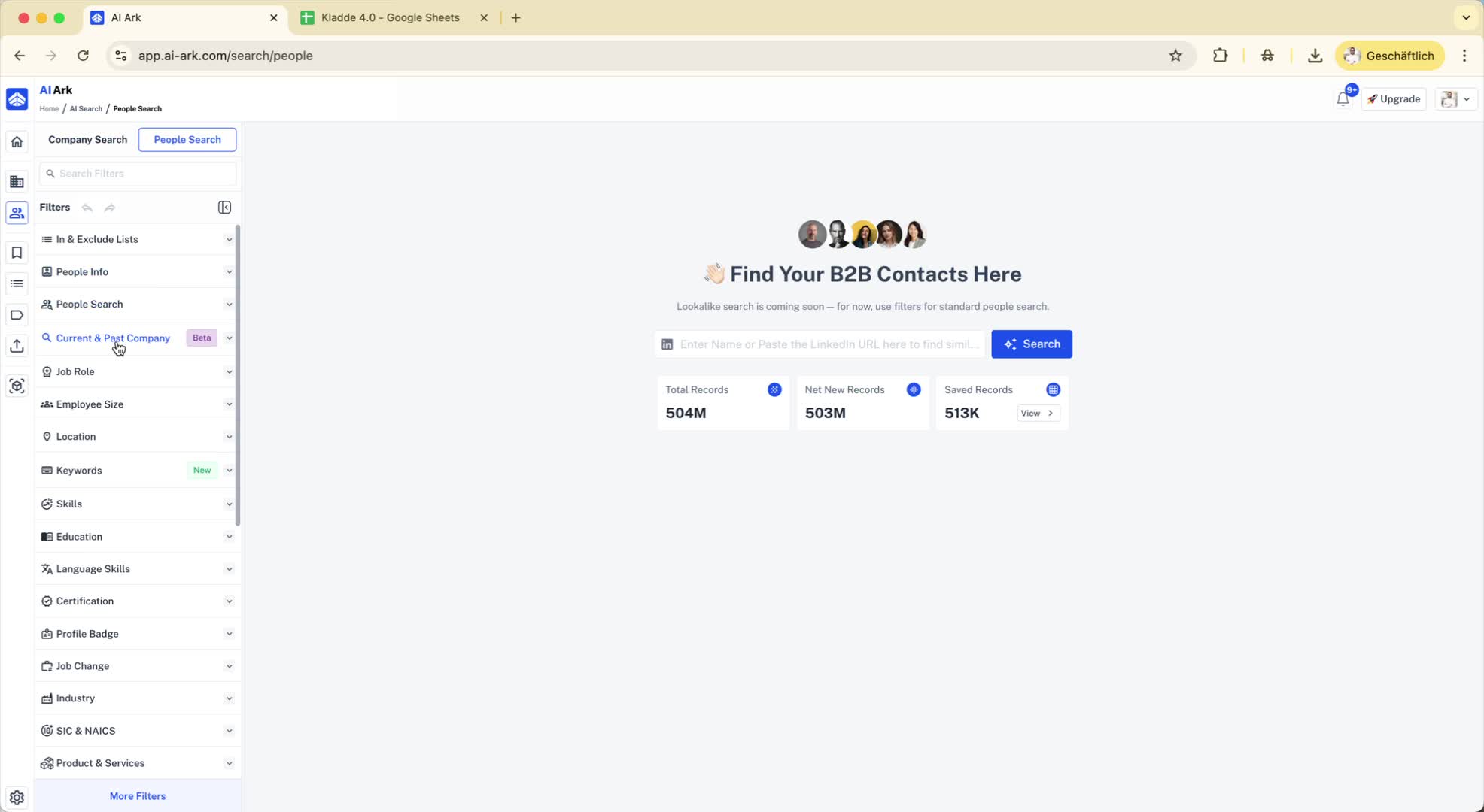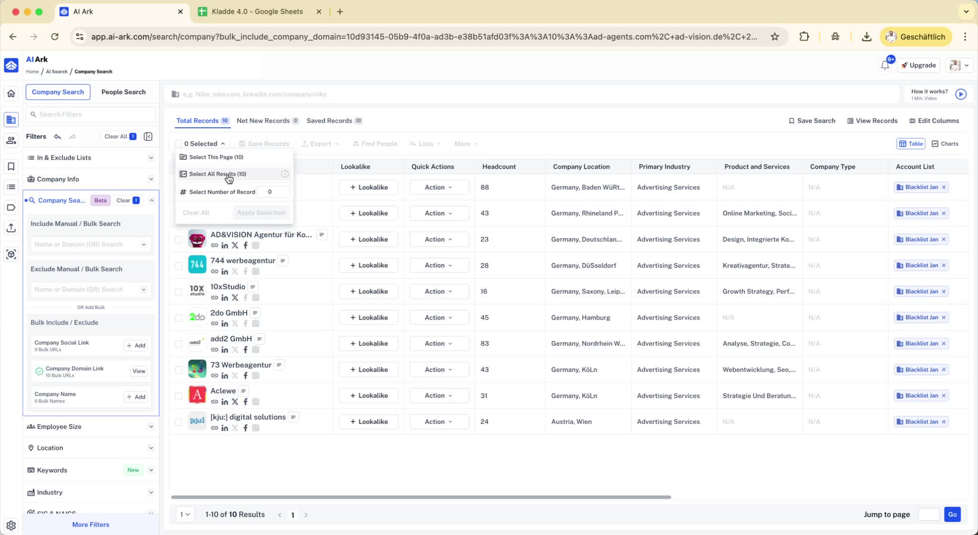 In the company search, select 'company social link' and add the LinkedIn URLs.