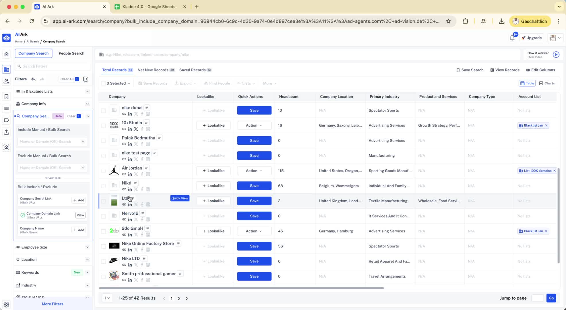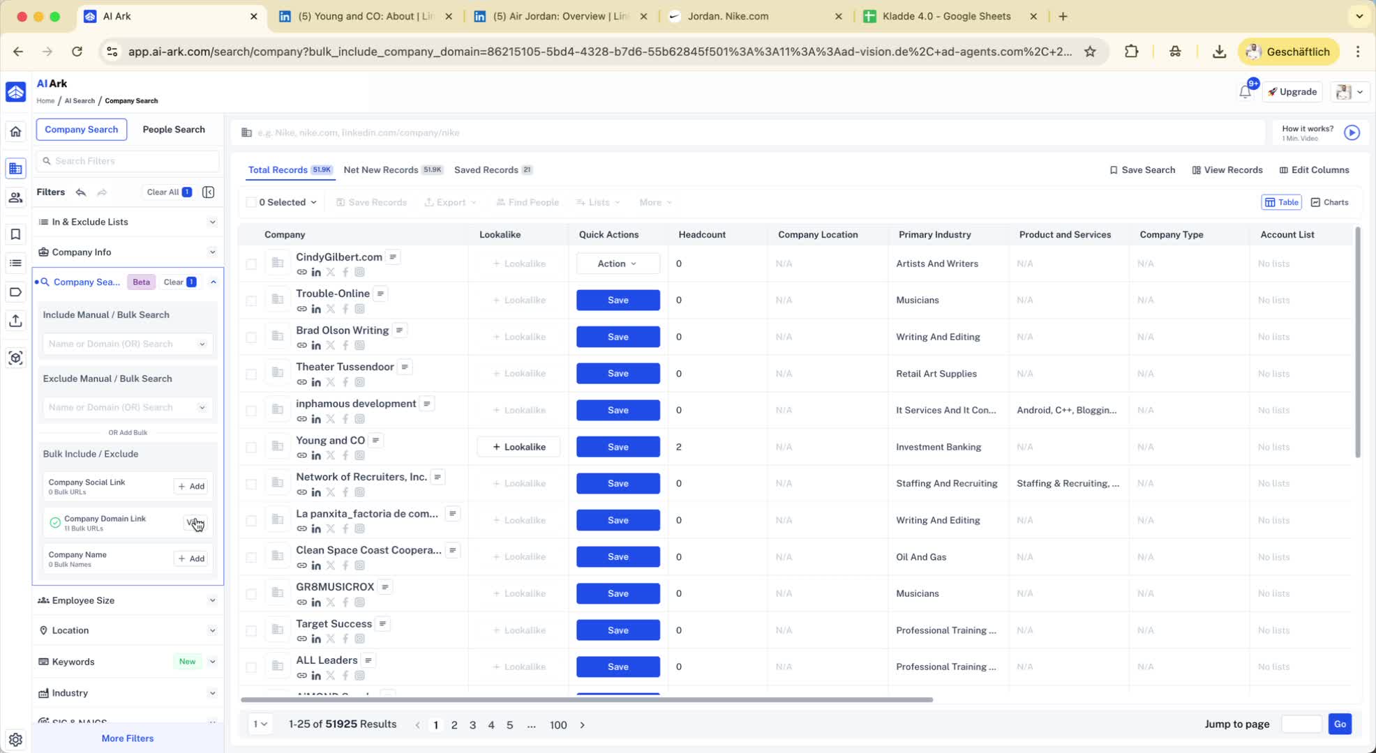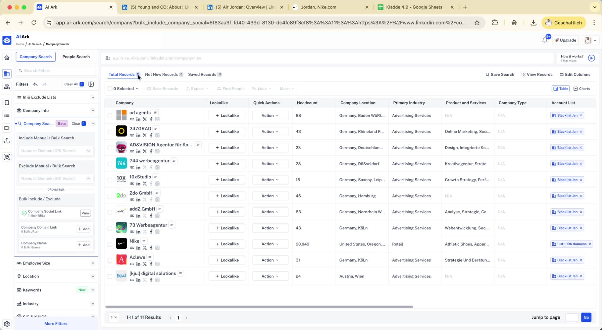 By using LinkedIn URLs, you should receive accurate results (e.g., exactly 11 results for Nike).