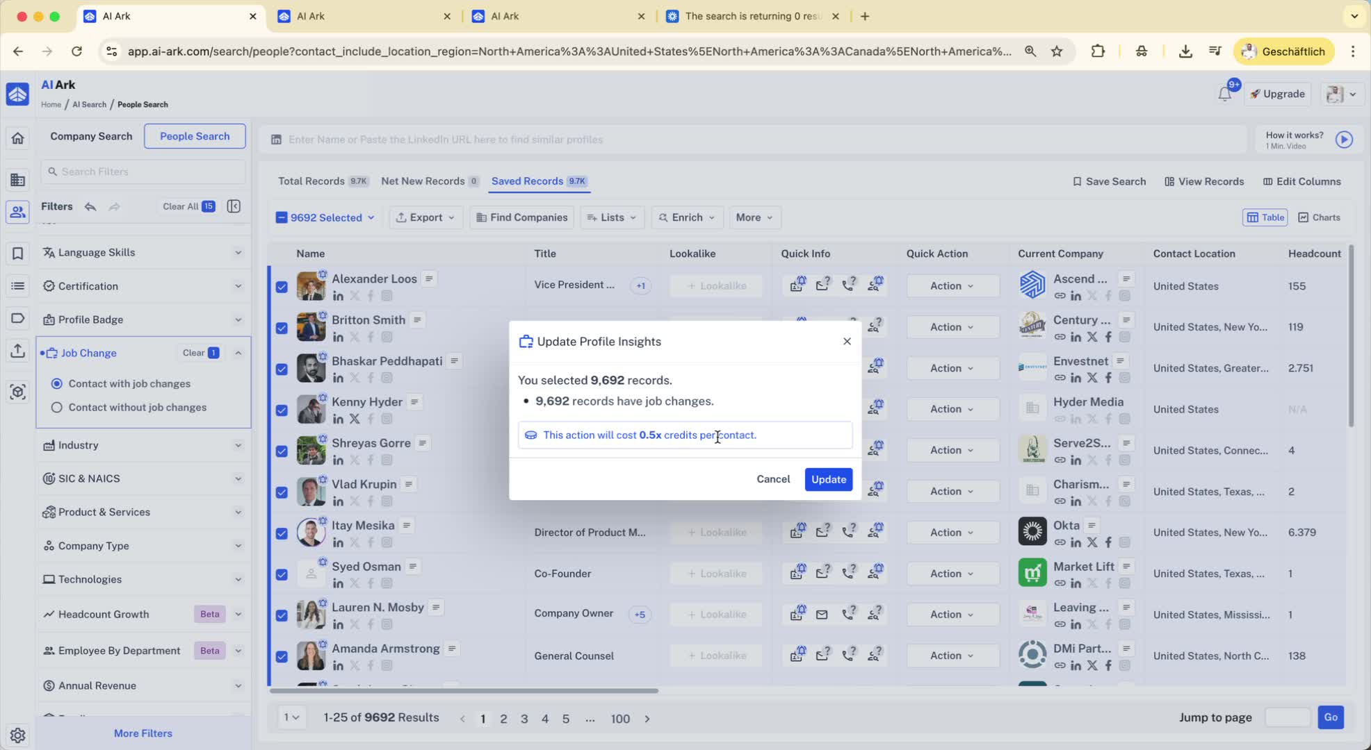 Navigate to the 'exports' section to view all previously exported contacts and companies.