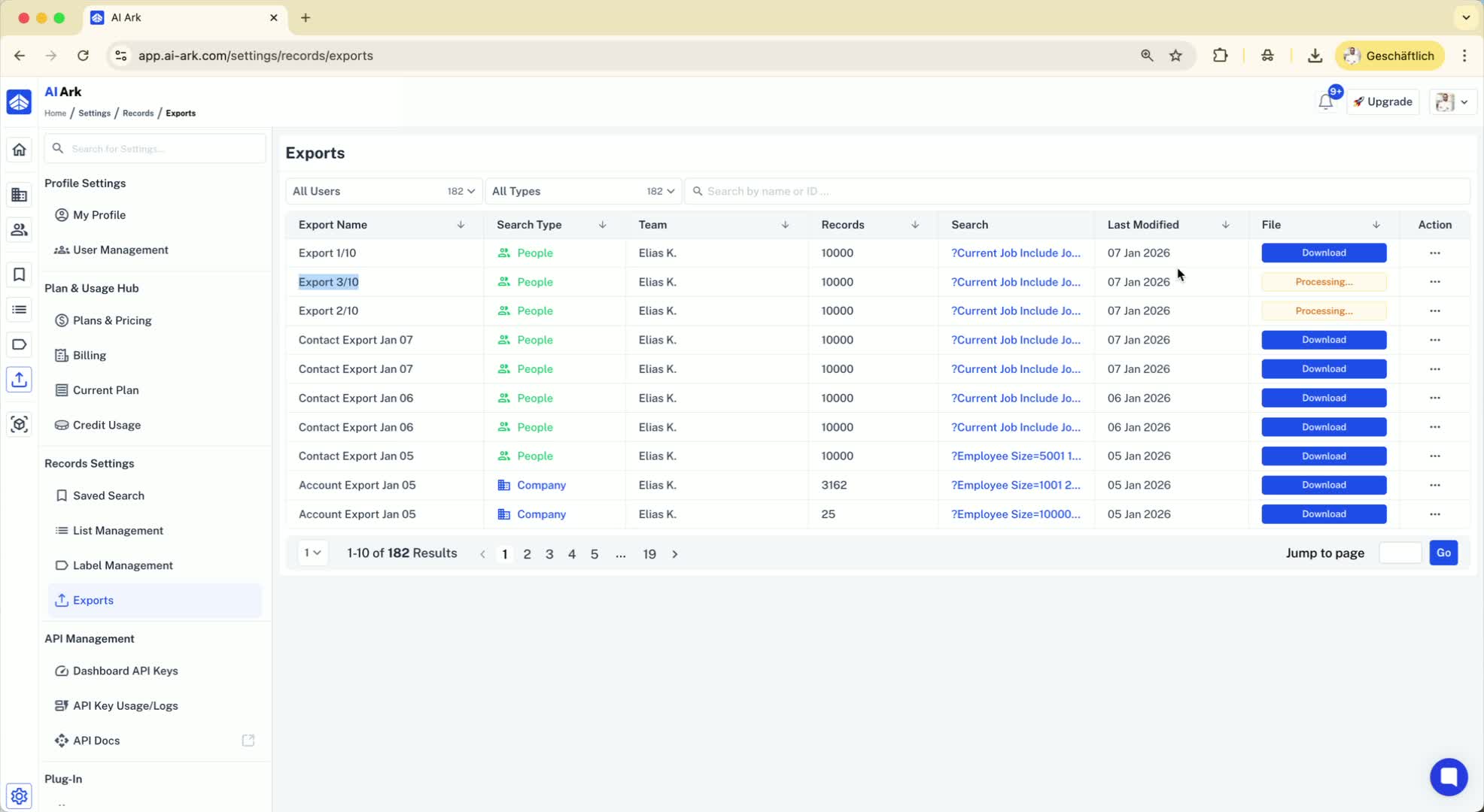 Note that there may be future updates allowing power users to export larger batches (up to 50,000).