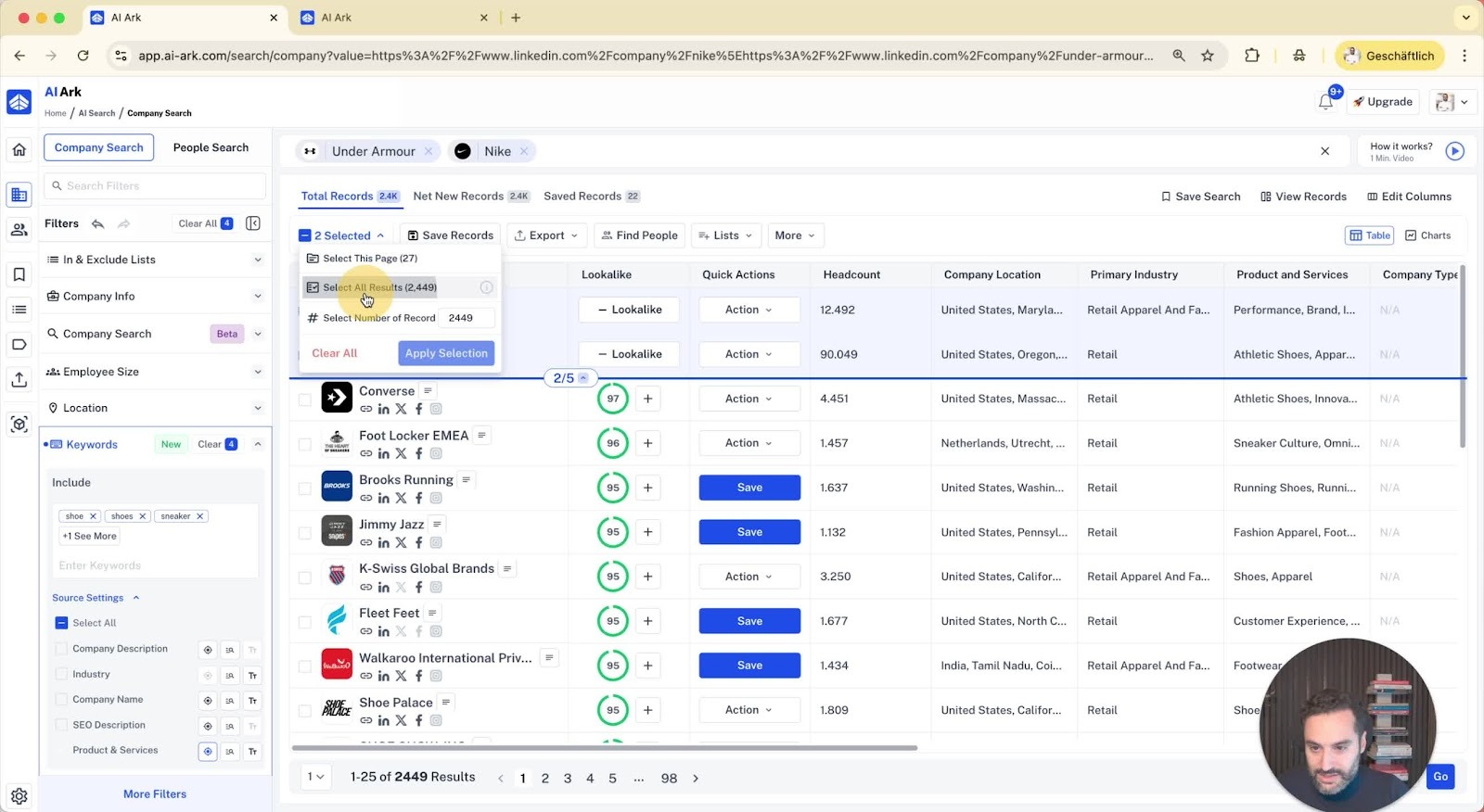 Use keywords to ensure companies sell specific products (e.g., shoes).
