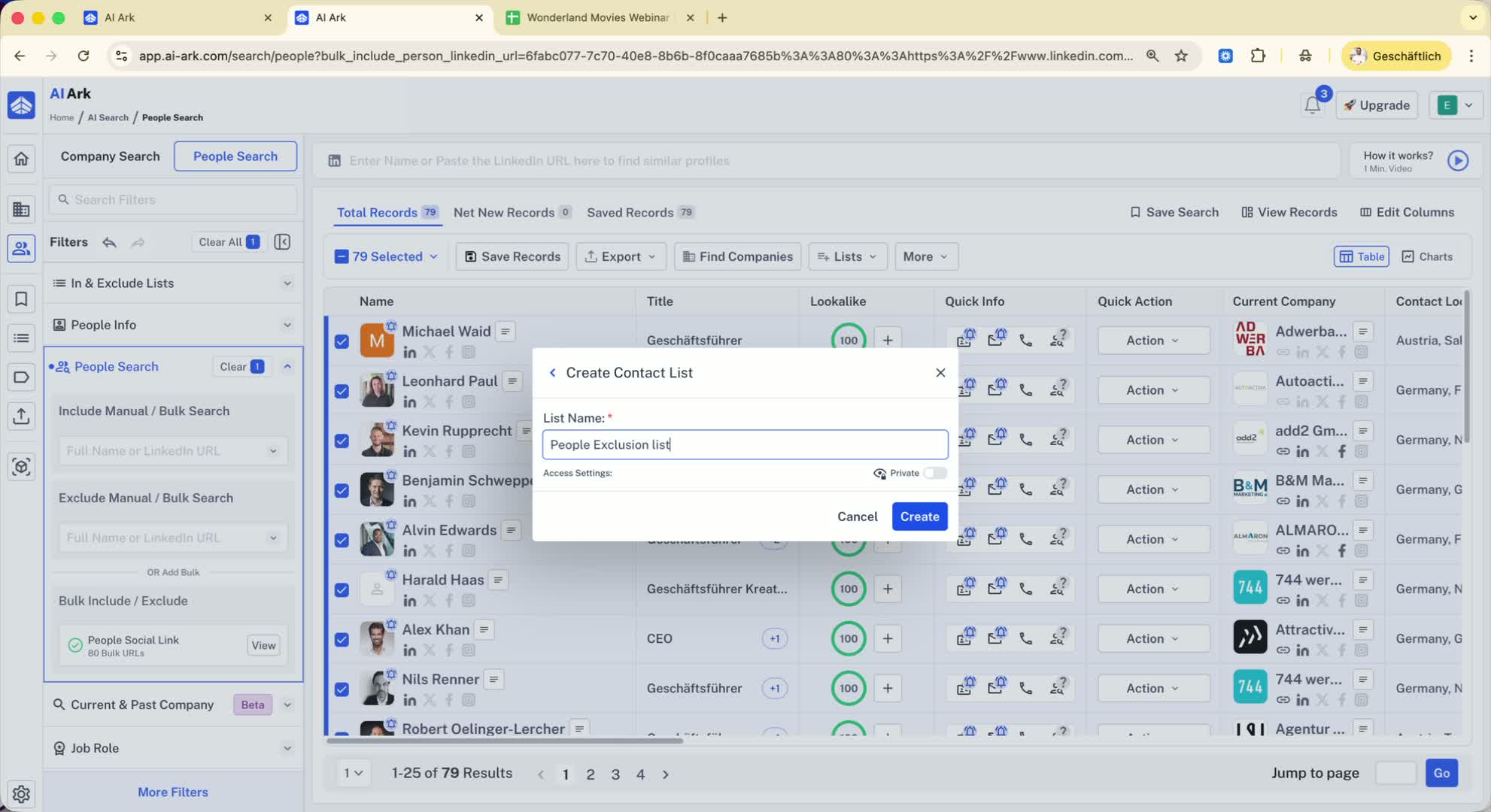 Apply selection and create a new list named 'People Exclusion List'.