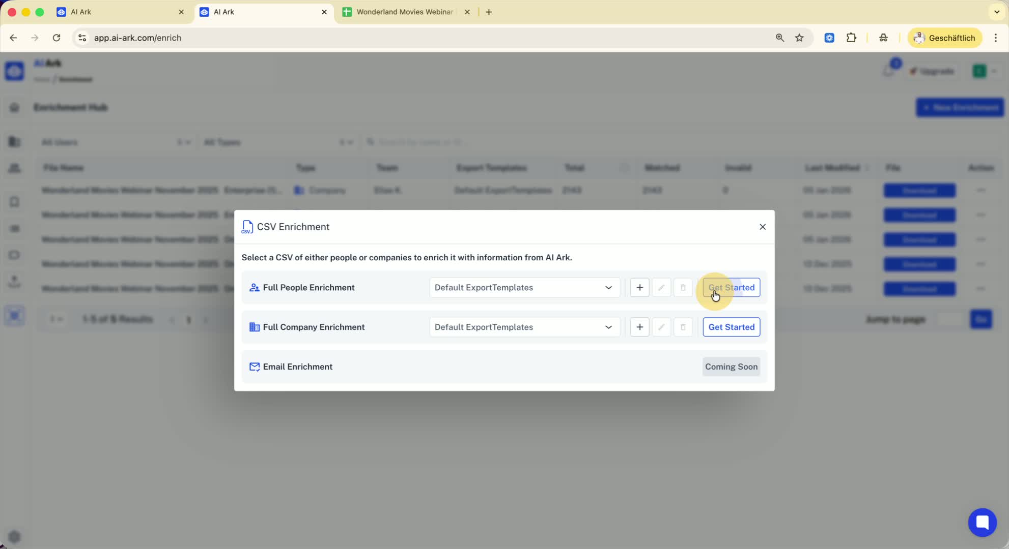 Click on 'New Enrichment' and select 'Full People Enrichment'.
