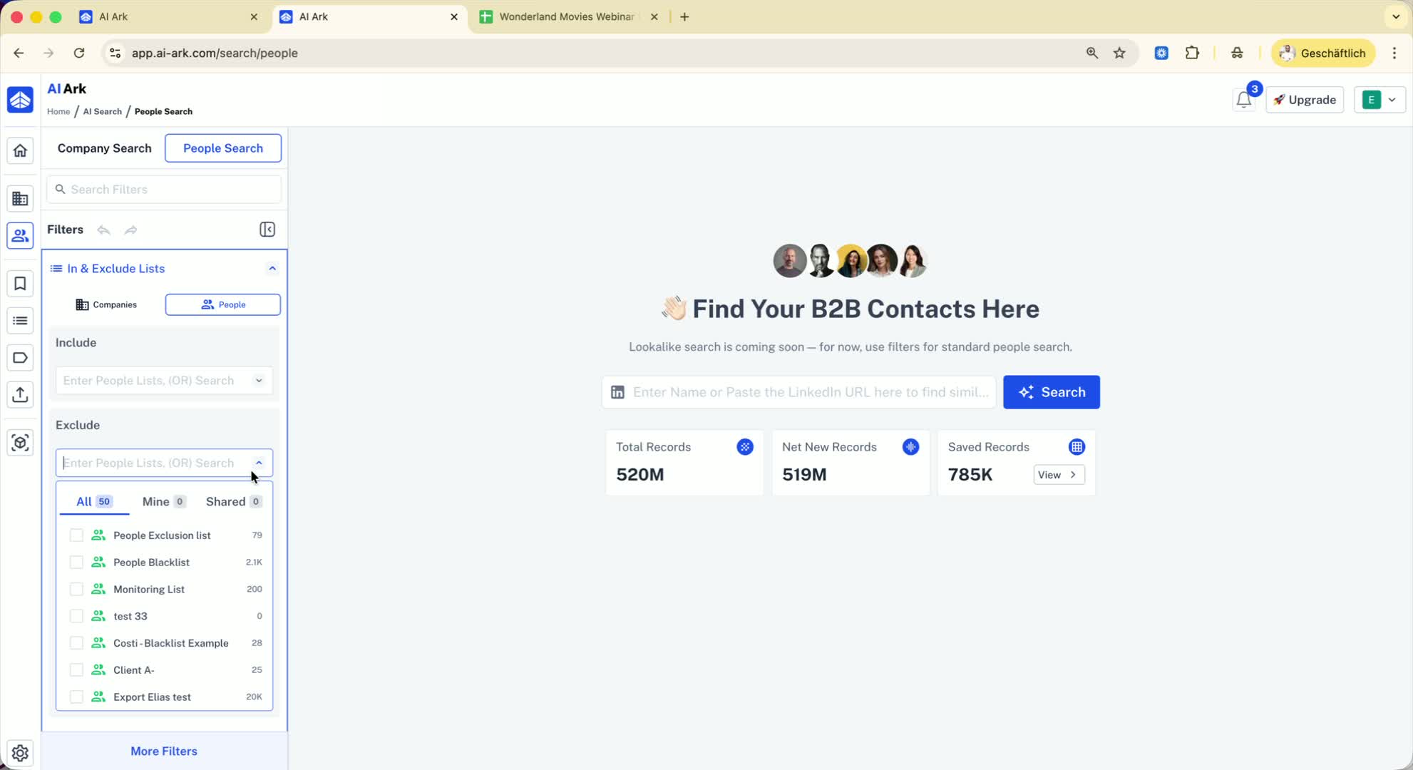 Select the 'People Exclusion List' to ensure these individuals are not included in your results.