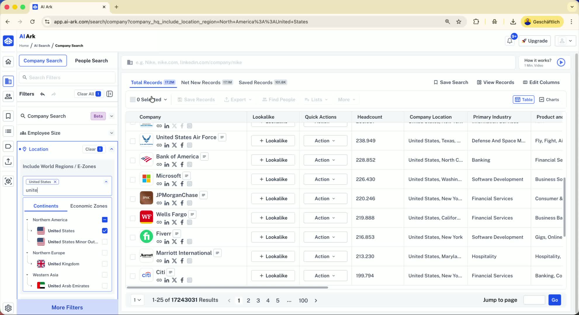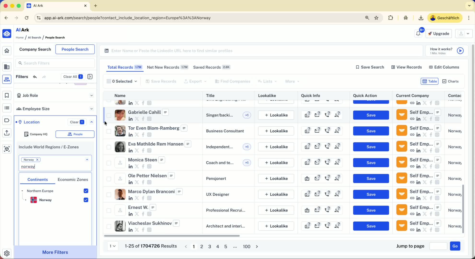Example: Searching for people in the European Union shows 86 million people, while Norway has 1.7 million people.
